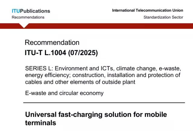 泰尔终端实验室表示,这是ITU首次制定的全球通用快速充电标准。其中方案的最佳实践部分,我国自主创新的快速充电方案作为全球的唯一的案例被推荐。中国通信标准化协会(CCSA)和电信终端产业协会(TAF)的双编号团体标准[T/CCSA668|T/TAF266-2025];[T/CCSA394|T/TAF092-2024]在参考文献中被引用。